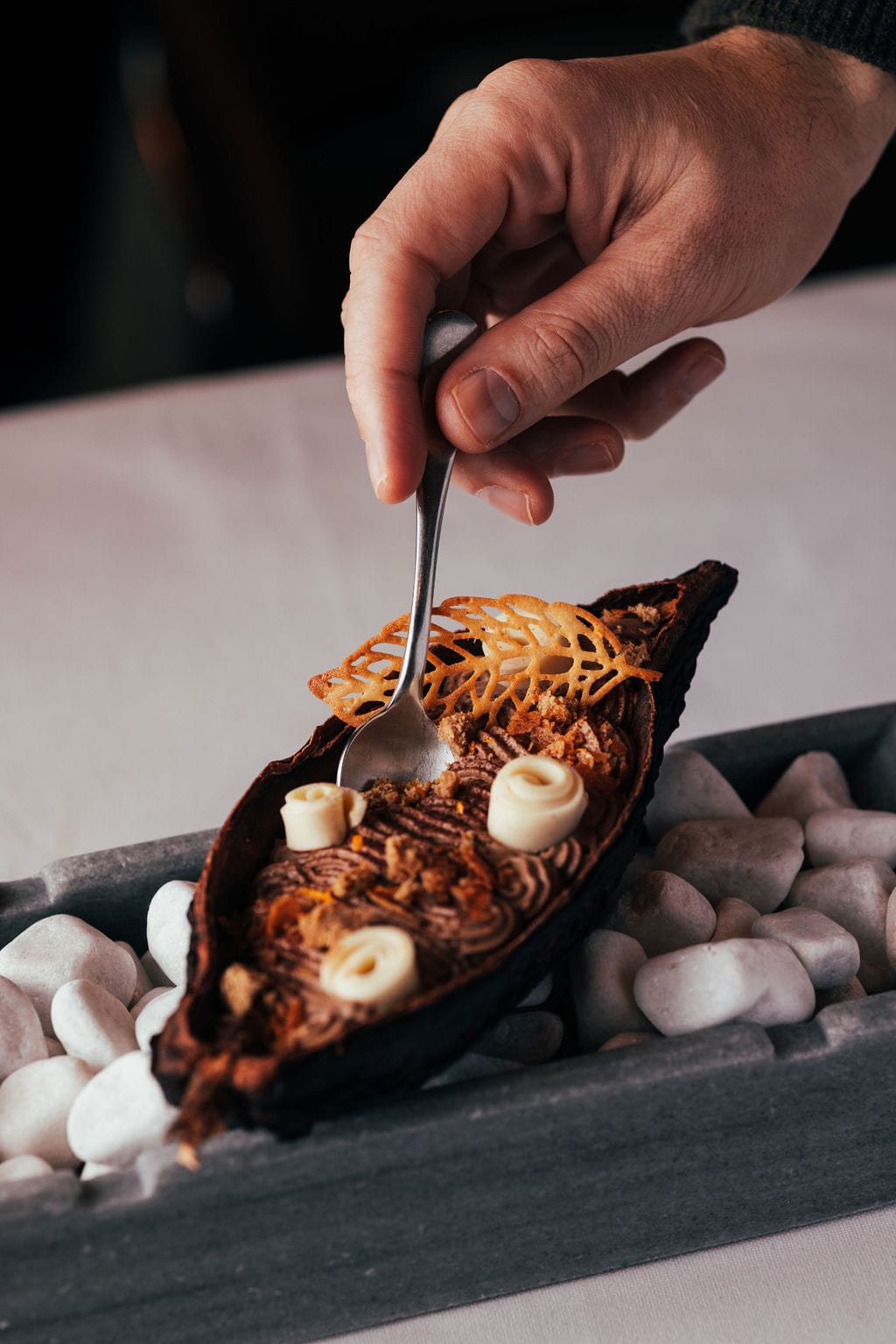 Pero quien prefiera salirse de la norma tiene otras opciones igualmente entretenidas. ¿Ejemplos? El brioche de cangrejo de concha blanda frito, el croissant de secreto ibérico con col china encurtida, la dorada al carbón y el magret de pato ahumado también al carbón.